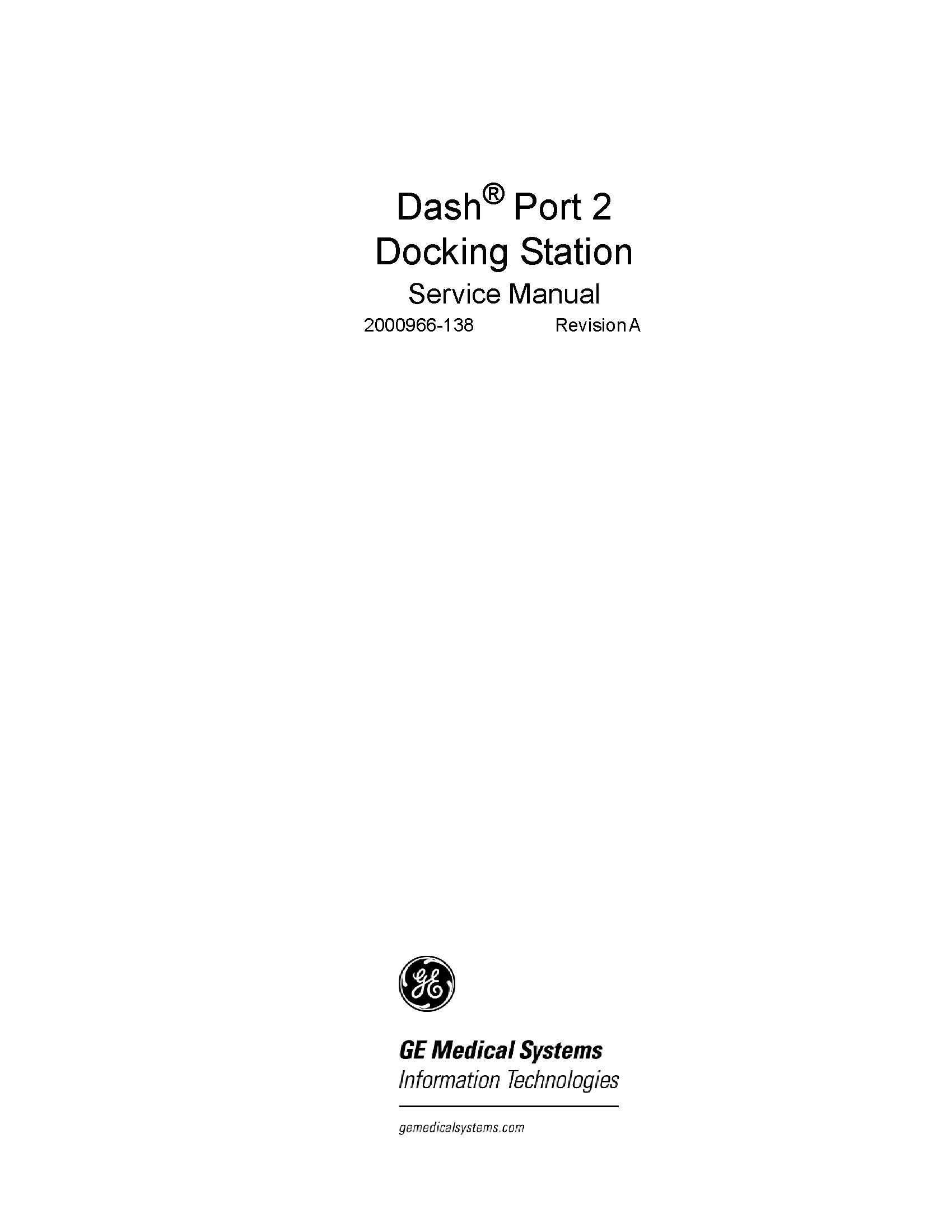 • GE Dash Port 2 Docking Station Service manual